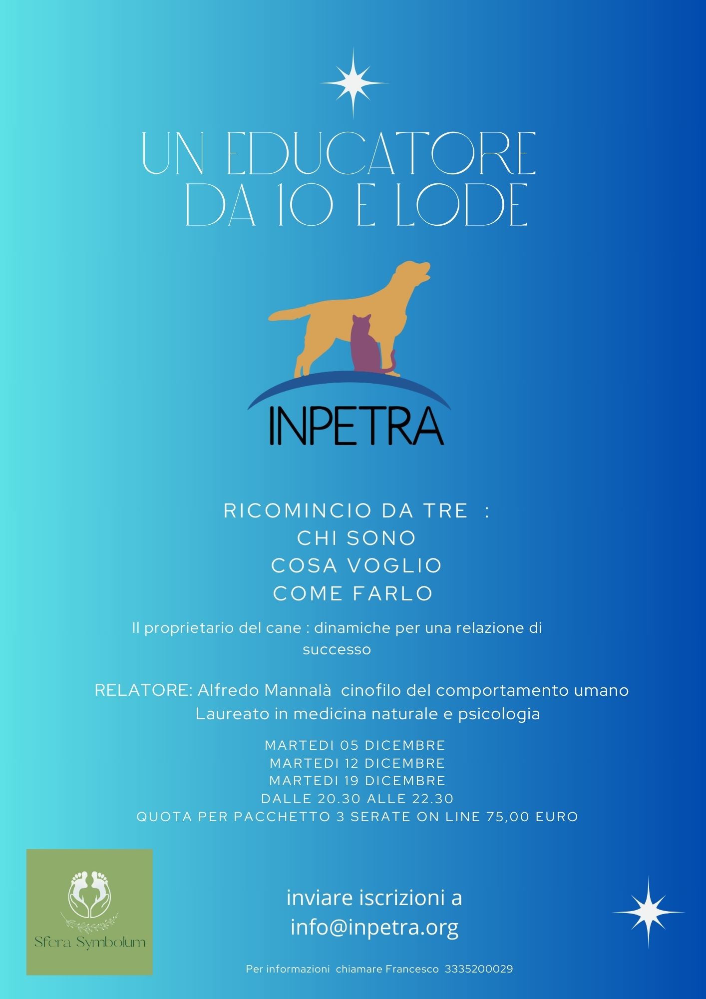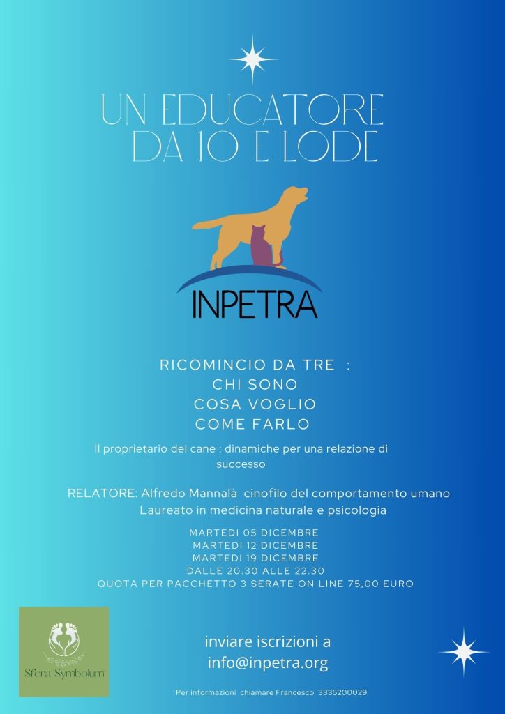 RELATORE: Alfredo Mannalà, cinofilo del comportamento umano, laureato in medicina naturale e psicologia.